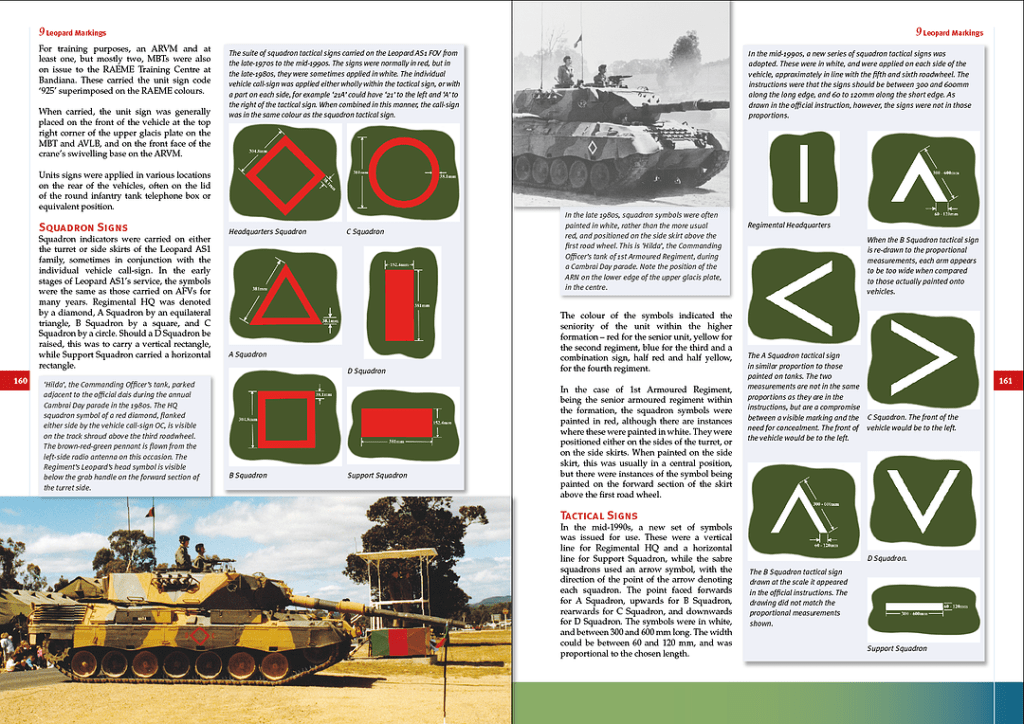 From a modeler’s perspective, this book is gold for many reasons. You get many pictures of pretty much all aspects of the AS1 family of vehicles. You get 1/35 drawings (of excellent quality, from author Michael Shackleton); a 5-sides view color plan to showcase the AUSCAM pattern (this is important, as it shows the proper pattern after which AUSCAM was applied. There could be variation in shapes and exact application, but always from the same basic template); manufacturer’s plans of various special equipment attachments; close up pictures of a myriad of details; an extensive explanation of all markings seen on AS1s; crew uniform & gear evolution pictures; an entire chapter devoted to color picture of AS1 in use in the field; a very important chapter for us modelers dealing with most modifications Australians made on their Leopards; A chapter devoted to training facilities, another to transporting the tanks, another for maintenance and refitting of them. You see where this is going. All of this, and more, with details captions and explanations. Understandably, pictures are not very large because in the end this not a photo study (Here’s to hoping for a complete Foto Focus on the subject! *wink wink*) . They are sufficiently clear to be entirely usable by modelers, anyway, and certainly are über inspiring. I know I’m currently reviewing my stack of projects to include an Australian Leo sooner than later!