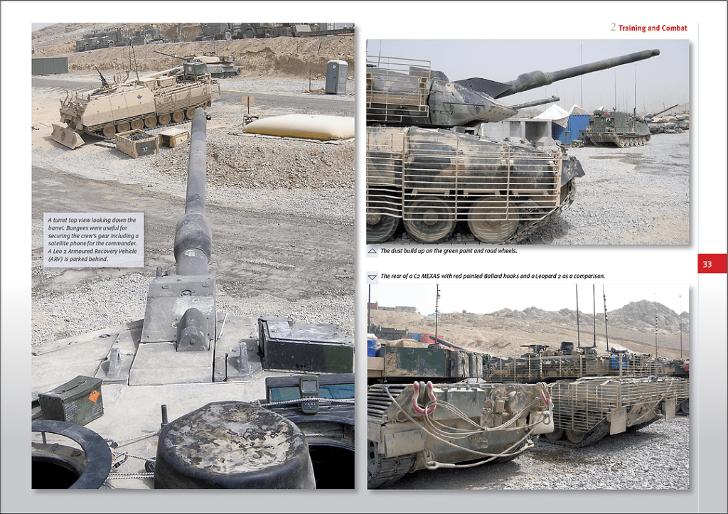 As the name of the series implies (“Foto Focus”), this book deals solely with photographs. It is partly a thorough walkaround of in-theater machines, partly a general visual study of the tank in its context of use. On the one hand, every conceivable details of the 2A6M CAN’s quite intricate layout are covered and presented from various angles. On the other hand, you get a good amount of broader pictures that present the machines in their environment. This double approach is ideal to properly cover the tank as used in Afghanistan.
