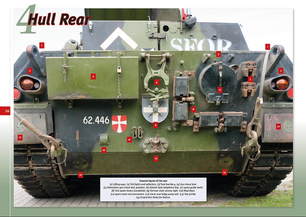 As per the series’ custom, the book is a logically organized collection of very high-quality photographs made by some 14 contributors. A good portion of the book, but not all of it, features a tank now under the tender care of the AKVPK, (Aalborg Kaserners Veteran Panser – og Koretojsforening, or the Aalborg Barracks Veteran Armour and Vehicle Preservation Society). Quoting the book: “[Leopard #62.446] is now in full combat order. In late April 2016, the tank was repainted and was as good as new in all respects at the time of writing.” In other words, the preservation work has been made with great care by a dedicated society, with excellent results.