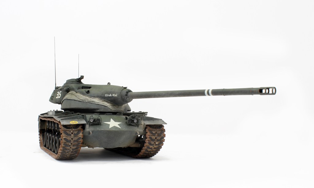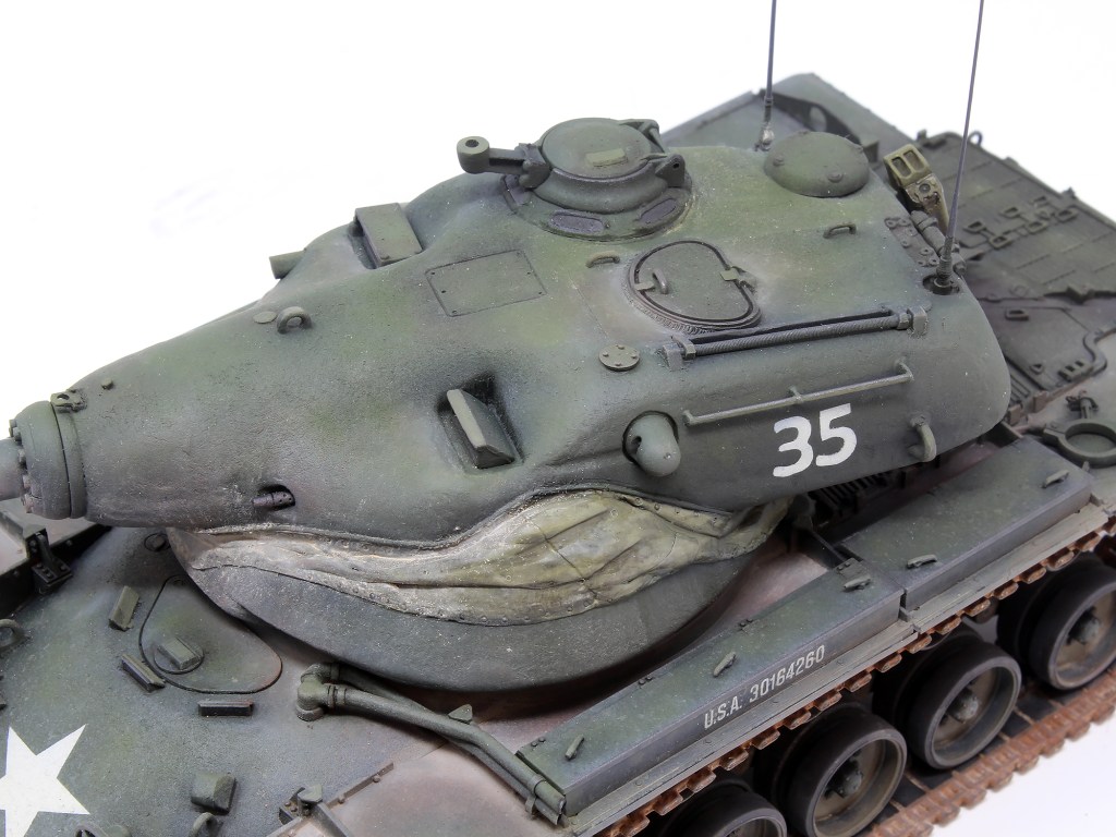 • Replaced the loader’s hatch with a part from… Tamiya’s super old M41.