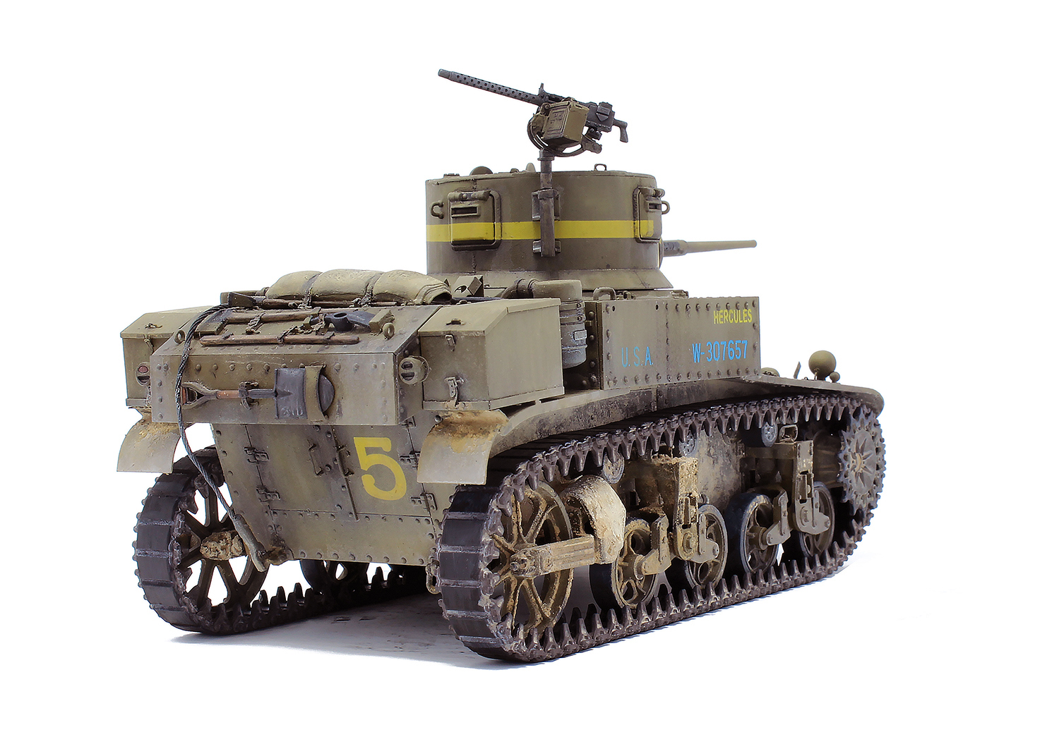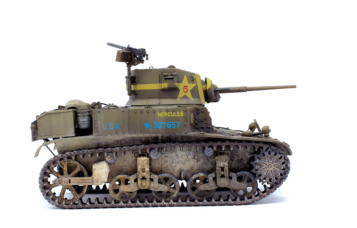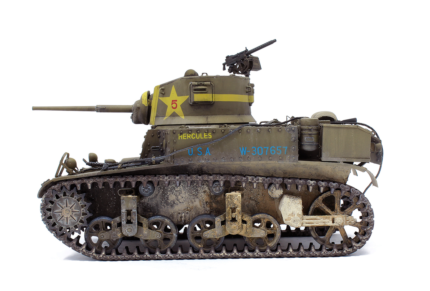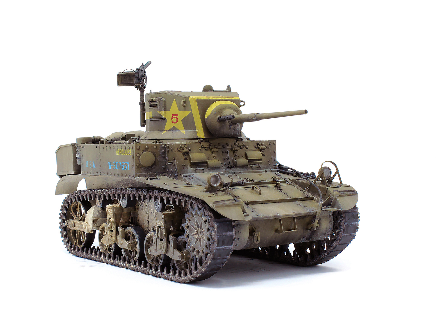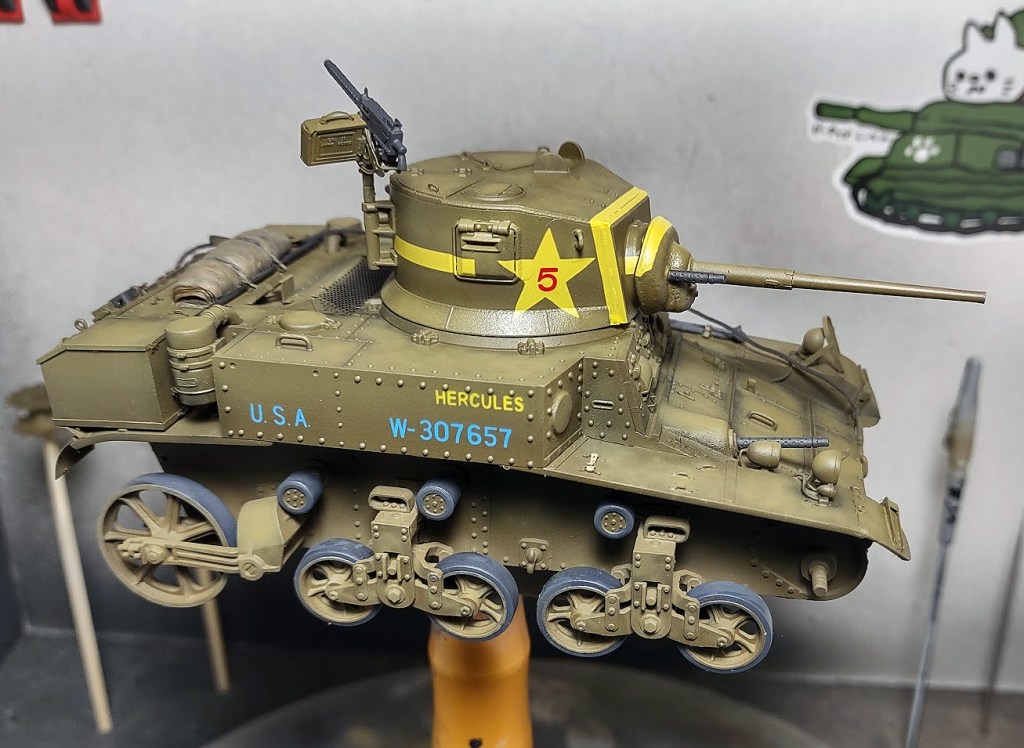 This is Tamiya’s 2018 iteration of the M3 Stuart. A very nice kit, with some PE additions. I made it a ‘semi-fictional’ tank of the 1st Armored Division in North Africa. Tamiya’s kit depicts El Diablo, I chose to portray fictional albeit, dare I say, quite plausible, Hercules.