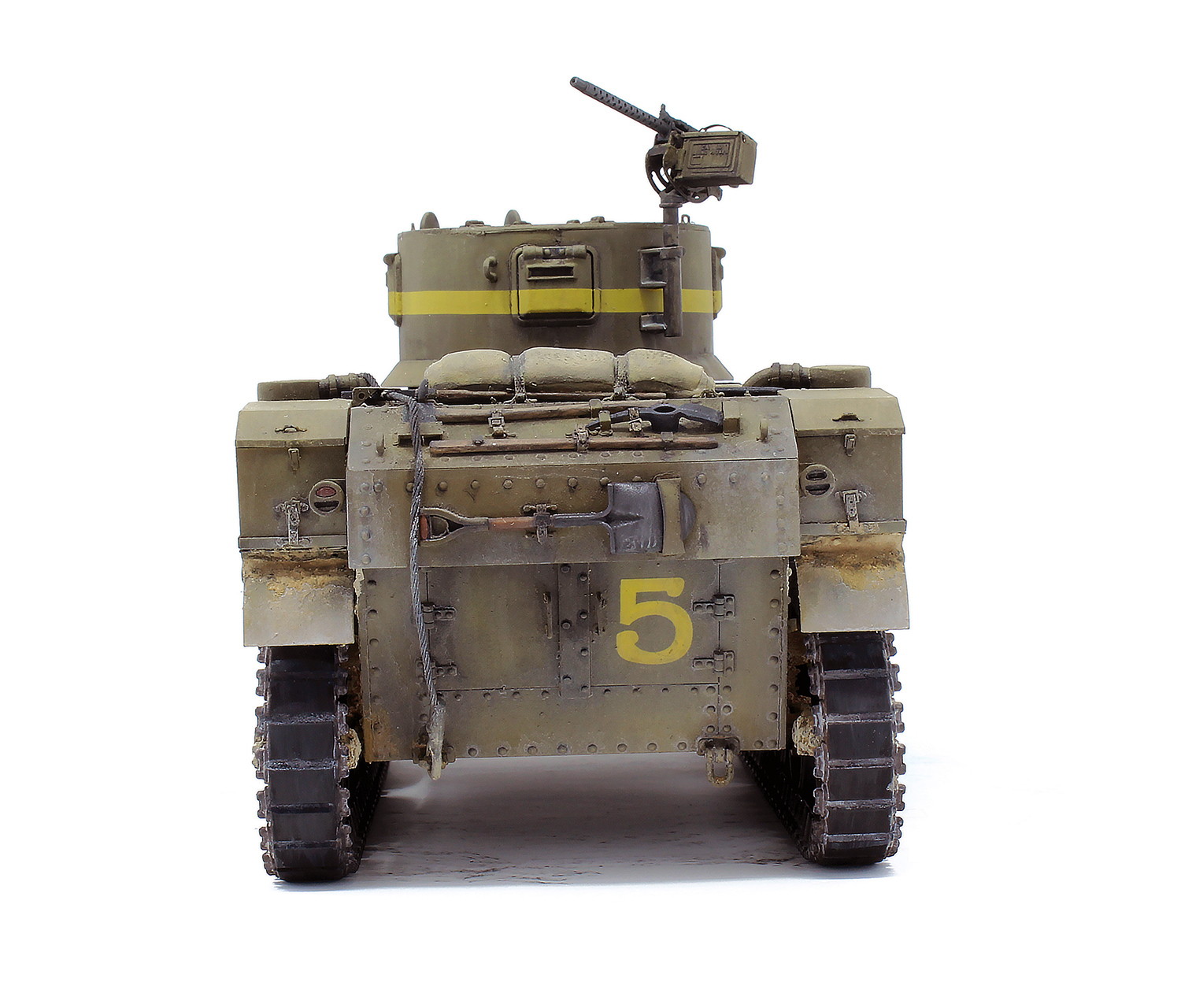 When I realized that most, if not all the references I had of North African Stuarts showed them with the fuel tanks add-on, and I had omitted to mount what appears to be the braces to secure them in place on the sponsons, I decided to go for an undocumented callsign 🙂 .